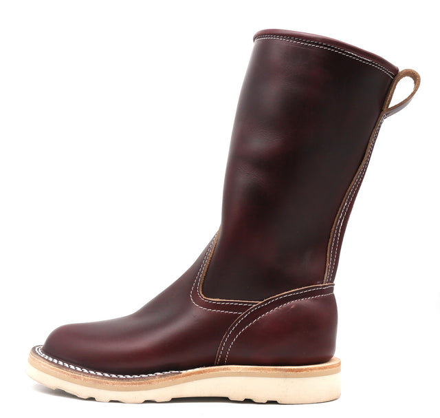 Standing 12" tall, this boot delivers confident coverage and a bold silhouette. It’s crafted from rich CXL #8 leather, prized for its deep burgundy tone, natural pull up, and ability to develop unmatched character over time. Every step enhances the leather’s depth and patina, making each pair uniquely yours.