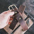 Our fastest-shipping belts. The Classic Work Belt is made from a 12–14oz single piece of USA-tanned leather and finished with a solid brass buckle. Ready to ship in a week or two!