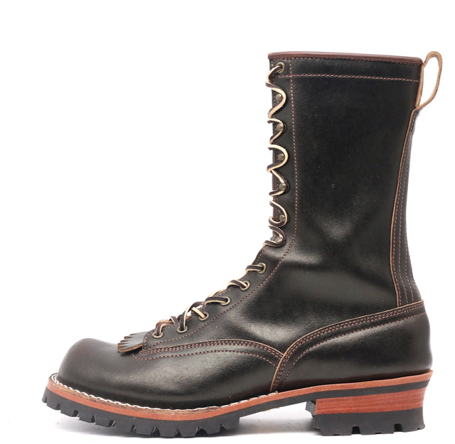 Designed with Nick's Lace-to-Toe (LTT) construction, this boot features laces that extend to the toes for superior adjustability, enhanced structural support, and a more secure fit than standard boots. Finished with antique hooks and eyes, a rolled top, and a Celastic toe for lasting shape and protection. Built on a rugged V100 lug sole and crafted from durable Brown Waxed Flesh leather for dependable traction and long-term wear.