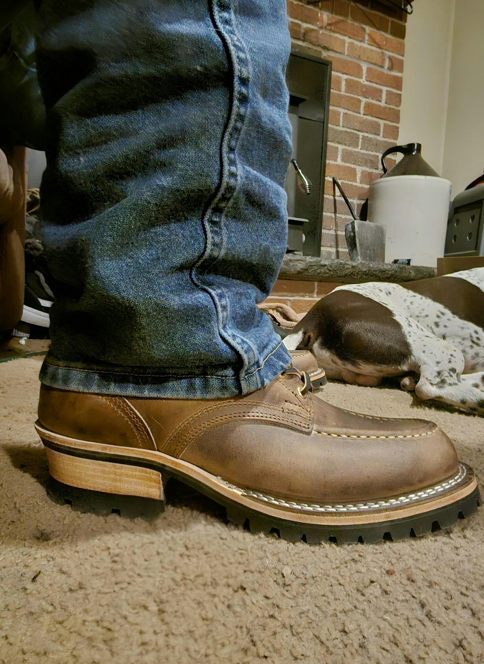 The Nicks Moc Toe features classic moc toe stitching, even through the heaviest of work boot leathers. Our moc toe construction priorities durability from the ground up. Instead of stitching together two pieces of leather to form the moc toe, our specialty sewing machine "gathers" the leather into a clean, pleated shape.